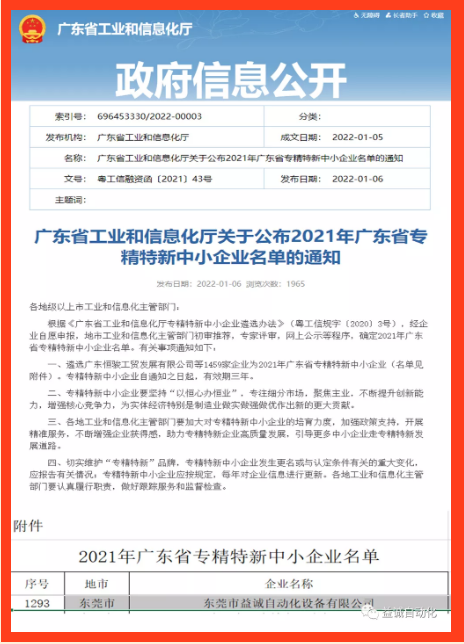 荣获“2021年广东省专精特新中小企业”