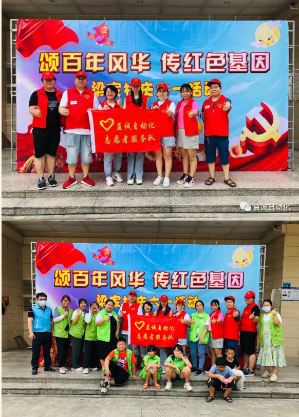 必一自动化志愿服务队队员们,周日早上来到了梁家村社区,为当天举办的“颂百年风华,传红色基因”六一儿童节日活动提供志愿者服务。